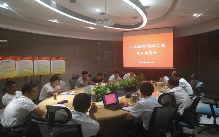 2018年6月19日,集團公司組織召開山東裕陽龍湖工程項目動員大會,會議由集團副總經理周璜主持,總經理王越及集團公司各部門負責人和山東裕陽龍湖項目管理人員參加了此次會議。