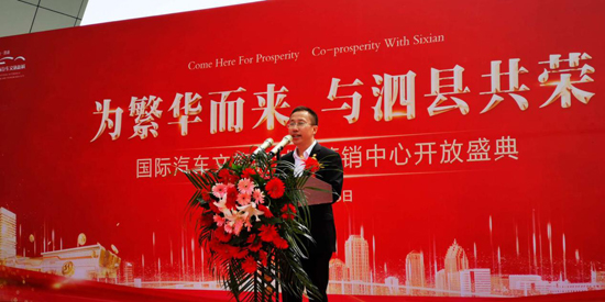 緊接著,多金集團(tuán)副總裁、多金泗縣國際汽車文旅新城項(xiàng)目總經(jīng)理余安云先生致辭發(fā)言,余總首先對能夠在百忙之中參與本次開放活動的嘉賓及領(lǐng)導(dǎo)和媒體朋友表示衷心感謝,余總表示:今天,是中國多金的大日子!也是多金泗縣國際汽車文旅新城發(fā)展史上一個值得紀(jì)念的日子!在各級各部門政府領(lǐng)導(dǎo)的關(guān)心下,在汽車行業(yè)協(xié)會組織的全力推動下,在合作伙伴的鼎力支持下,經(jīng)過精心籌備,多金泗縣國際汽車文旅新城今天終于迎來了營銷中心盛大開放!這是項(xiàng)目建設(shè)過程中的重要一環(huán),正式向泗縣人民展示她的發(fā)展和未來,也是一個新的起點(diǎn)。將以“一座汽車城,一個新核心”的堅(jiān)定信念,為泗縣人民服務(wù),為泗縣汽車行業(yè)發(fā)展助力。
