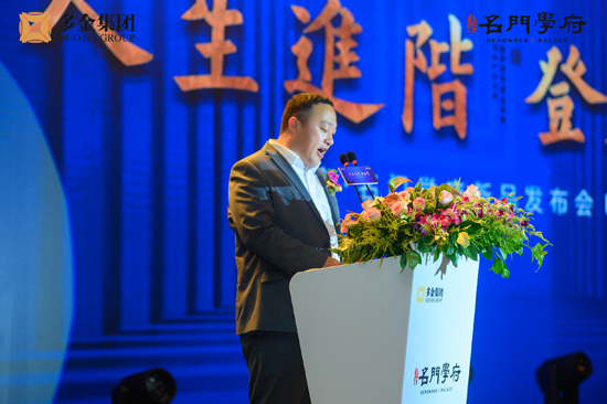 多金?名門學府項目總經理曹魁先生首先上臺致辭,與現場來賓分享了多金品牌的故事。并表示,在未來,多金集團將以名門學府項目為起點,以匠心敬獻千年文明亭城,以初心與滁州人民共筑幸福家園!