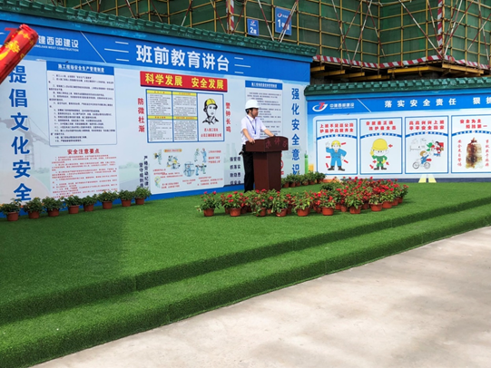活動現場,禮花鞭炮齊鳴,主持人以熱情洋溢的聲音宣布多金名門學府項目主體結構正式封頂。伴隨著禮花的從天而降,滿空飛舞,出席嘉賓在主席臺宣布完成封頂混泥土澆灌,使活動現場氣氛達到高潮。