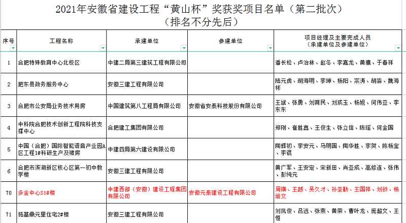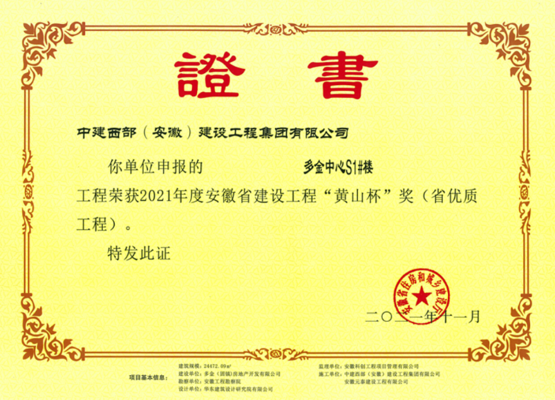 熱烈祝賀中建西部固鎮(zhèn)多金中心S1#樓獲得安徽省建設(shè)工程黃山杯獎(jiǎng)