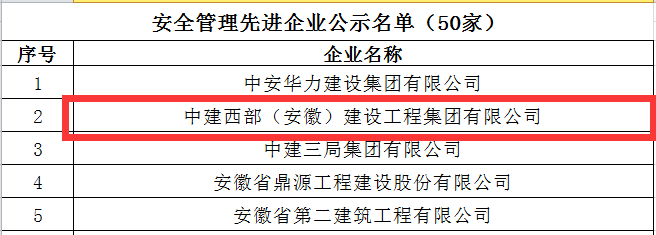 近日,合肥市建筑工程協(xié)會(huì)傳來(lái)喜訊, 2021年度合肥市建筑業(yè)優(yōu)秀企業(yè)、單項(xiàng)先進(jìn)企業(yè)、先進(jìn)個(gè)人名單的評(píng)選已出爐,中建西部(安徽)建設(shè)工程集團(tuán)有限公司斬獲多項(xiàng)榮譽(yù)——2021年度安全管理先進(jìn)企業(yè)和揚(yáng)塵治理先進(jìn)個(gè)人稱號(hào)。