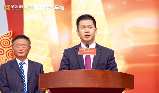隨后,多金集團(tuán)董事長劉濰彬先生在致辭中首先對泗縣縣委、縣政府領(lǐng)導(dǎo)以及各位嘉賓的到來表示感謝!對在項(xiàng)目籌備階段,給予大力支持的縣委、縣政府表示衷心感謝!同時(shí),對項(xiàng)目做了簡要介紹,多金·泗縣國際汽車城輻射周邊五市九縣,規(guī)劃面積約520畝,預(yù)計(jì)投資額23億。打造集汽車4S店、汽車零部件市場、汽車裝飾、汽車互聯(lián)網(wǎng)交易平臺、倉儲、物流配送、大型會展中心、綜合服務(wù)等為一體的現(xiàn)代化、國際化、多元化的汽車產(chǎn)業(yè)集群。多金集團(tuán)作為一家具有高度社會責(zé)任感的企業(yè),必將不忘初心,牢記使命,堅(jiān)持“四高原則”(即高標(biāo)準(zhǔn)、高要求、高品質(zhì)、高效率),絕不辜負(fù)縣委、縣政府和社會各界的希望,努力把多金·泗縣國際汽車城建成安徽省汽車綜合市場標(biāo)桿項(xiàng)目,為泗縣人民交上一份滿意答卷!
