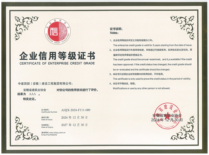 “AAA級信用企業(yè)”評級由安徽省建筑業(yè)協(xié)會組織評審,通過多維度考核企業(yè)在市場行為、合同履約、工程質(zhì)量、安全生產(chǎn)、社會信譽等方面的綜合表現(xiàn)。作為省內(nèi)建筑業(yè)信用評級的最高榮譽,該認證不僅是企業(yè)核心競爭力的體現(xiàn),更是客戶信賴、合作伙伴認可的重要依據(jù)。中建西部(安徽)建設工程集團以規(guī)范的管理體系、優(yōu)質(zhì)的工程品質(zhì)和良好的行業(yè)口碑,從眾多參評企業(yè)中脫穎而出,充分彰顯了企業(yè)在誠信經(jīng)營領域的標桿地位。